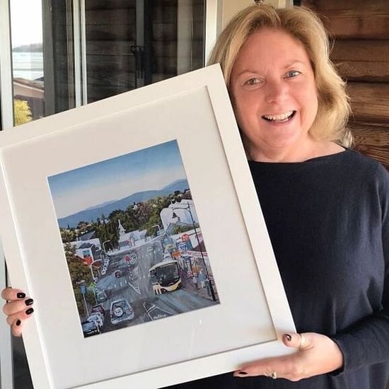 Marion with a beautiful art print, gifted from Heléne.