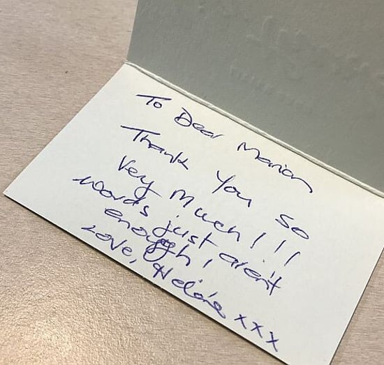 Michelle said, "Marion, you went over and above, and I'm really grateful for all your help over the years."